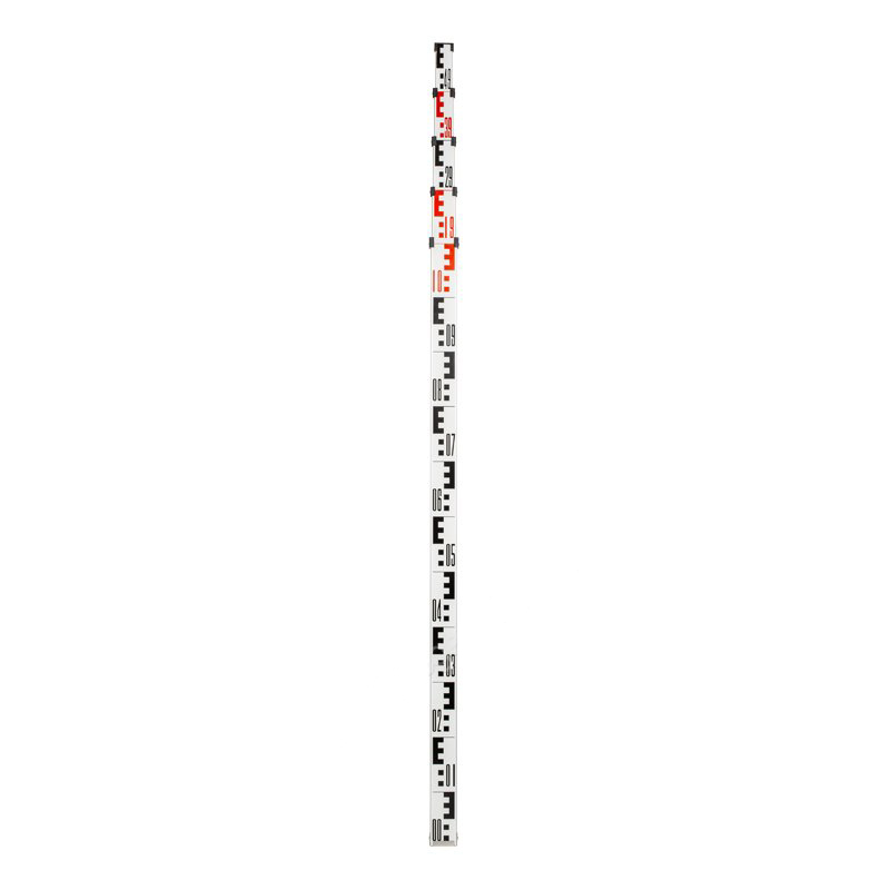 Рейка нивелирная AMO S5 представляет собой 5 последовательно выдвигаемых секций на высоту до 5 м, которые вы можете надежно зафиксировать с помощью блокирующей кнопки. Оснащена как Е-градуированной, так и миллиметровой шкалой, что позволяет проводить измерения с точностью до 1 мм. Для достижения максимально вертикального положения нивелирная рейка оснащена пузырьковым уровнем.